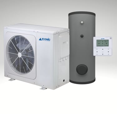 Monoblok Havadan Suya Isı Pompası, split sistemlere göre daha kompakt bir yapıda olup, dış ünitenin içinde hem soğutucu akışkan devresini hem de hidronik modülü barındırır. Bu sayede iç ünitenin ayrı bir parçası olmaz ve kurulumu daha kolaydır.